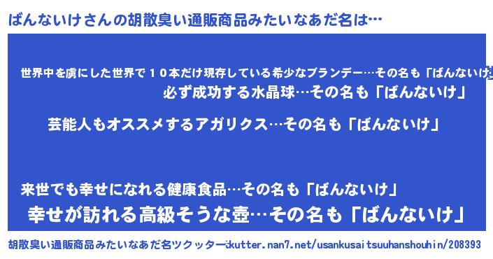 | 意味不明あだ名 | 『自称ばんないけ』『ペロリンばんないけ』 |