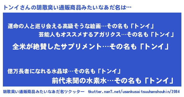 | 意味不明あだ名 | 『とにかく怪しいトンイ』『自称トンイ』 |