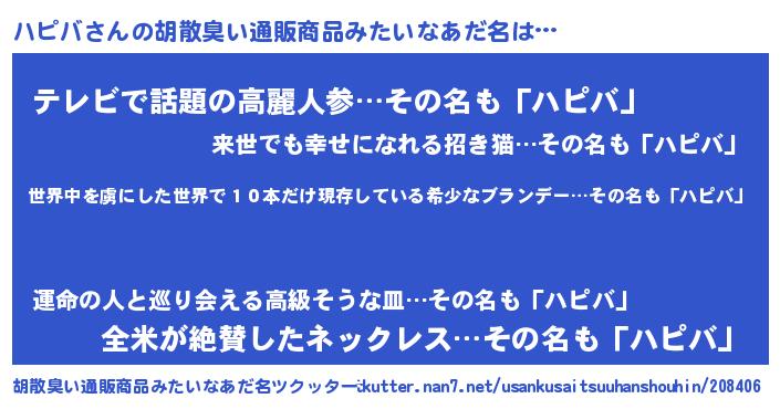 | ヒーロー風カッコイイあだ名 | 『仮面ハピダー』『究極戦士ハピバ』 |