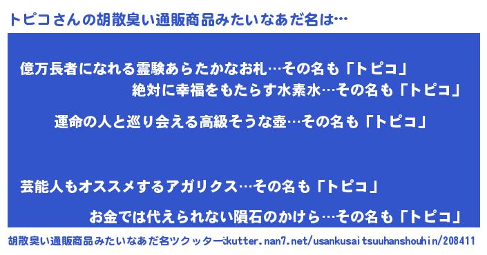 | ファンタジー風あだ名 | 『エターナルトピコー』『トピフェル』 |