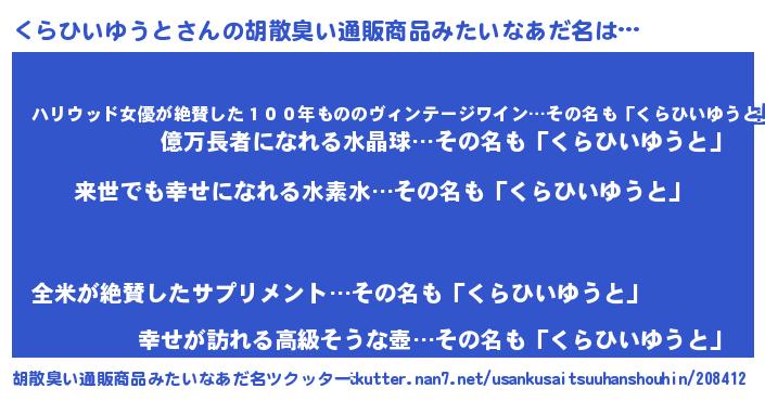 | ヘコむあだ名 | 『くらひいゆうと(遠い目)』『なまこ酢』 |