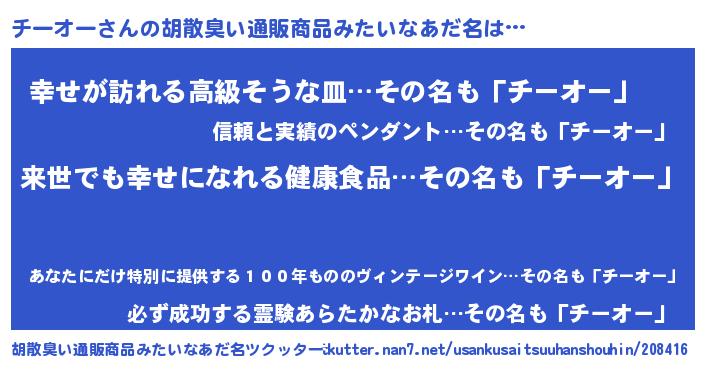 | ヒーロー風カッコイイあだ名 | 『ネオチーオー』『ウルトラチーオーマン』 |