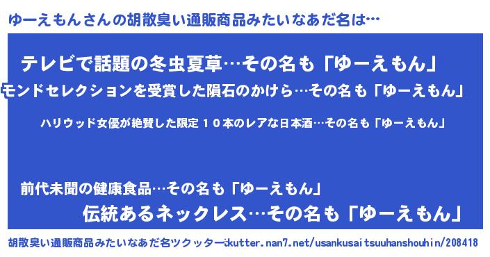 | 意味不明あだ名 | 『住所不定無職ゆーえもん(40歳)』 |