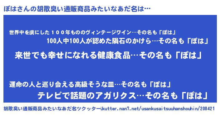 | 意味不明あだ名 | 『永久保存ぽは』『住所不定無職ぽは(84歳)』 |