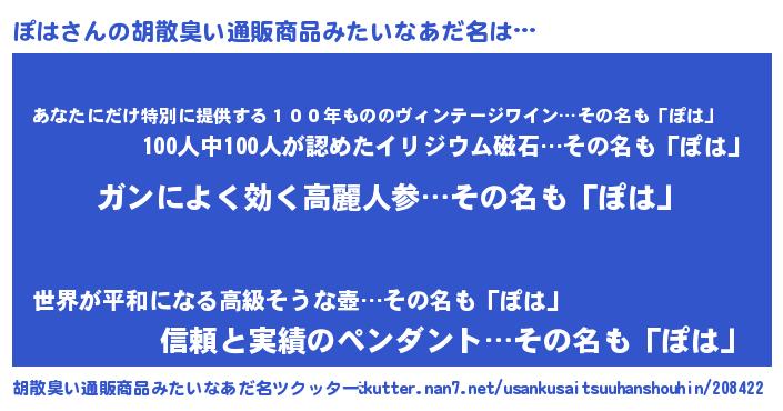 | 意味不明あだ名 | 『自称ぽは』『住所不定無職ぽは(56歳)』 |