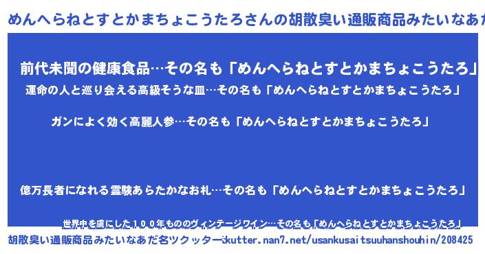 | 意味不明あだ名 | 『自称めんへらねとすとかまちょこうたろ』 |