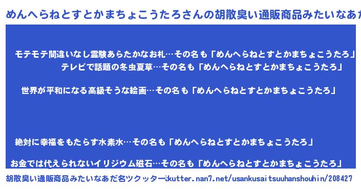 | 肩書あだ名 | 『めんへらねとすとかまちょこうたろ総理大臣』 |