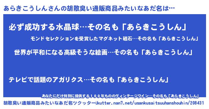 | 欧米人風あだ名 | 『あらきこうしんクリステル』 |