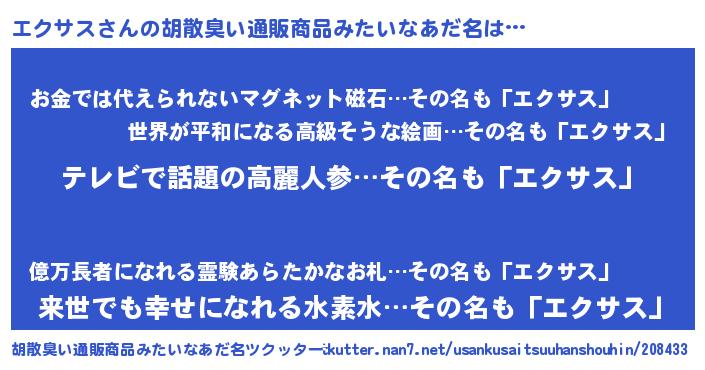 | ヘコむあだ名 | 『エクサス(小並感)』『豆乳』 |