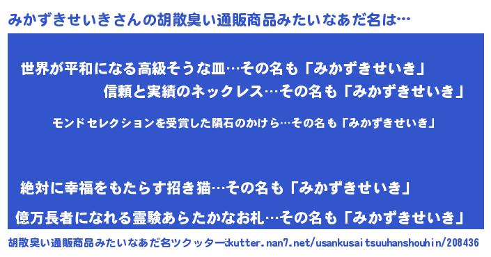 | ヒーロー風カッコイイあだ名 | 『慈愛の使者みかずきせいき』 |