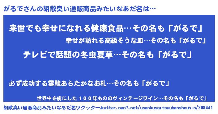 | 男性向けラノベタイトル風あだ名 | 『Re:がるでから始める異世界生活』 |