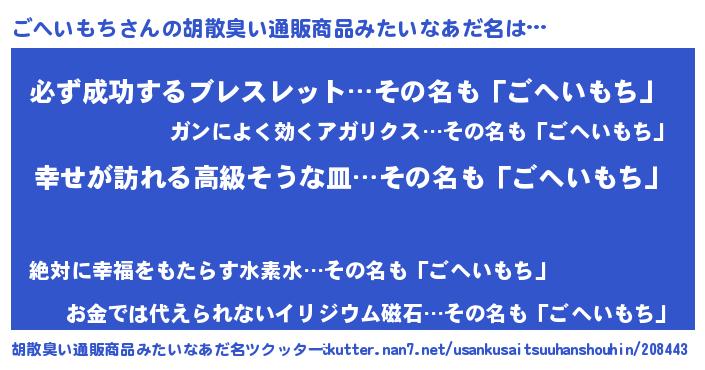 | 意味不明あだ名 | 『ごへいもちフォーエバー』 |