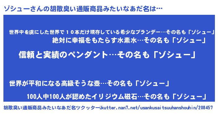 | 意味不明あだ名 | 『とにかく怪しいゾシュー』 |