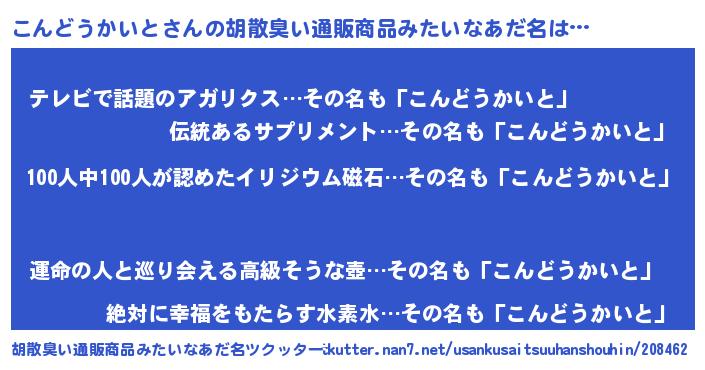 | ヘコむあだ名 | 『こんどうかいと(爆)』『こんぷりん』 |