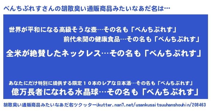 | 意味不明あだ名 | 『とにかく怪しいべんちぷれす』 |