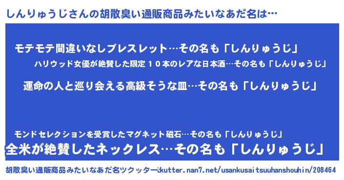 | 意味不明あだ名 | 『しんりゅうじフォーエバー』 |
