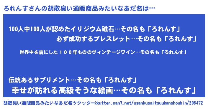 | 意味不明あだ名 | 『住所不定無職ろれんす(8歳)』 |