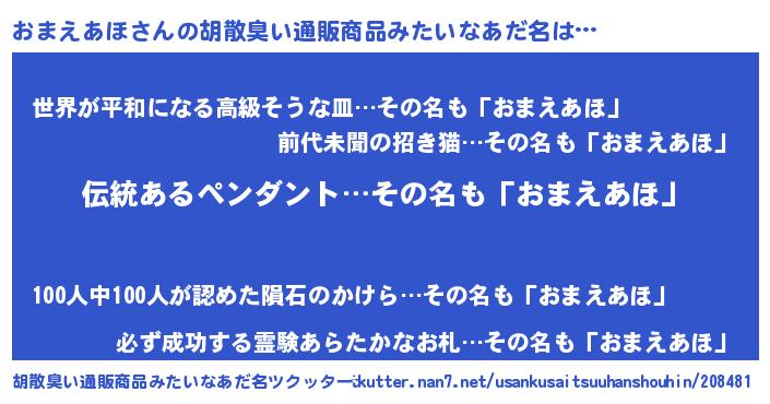 | 意味不明あだ名 | 『とにかく怪しいおまえあほ』 |