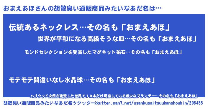 | ヘコむあだ名 | 『おまお』『豆乳』『おまにゅー』 |
