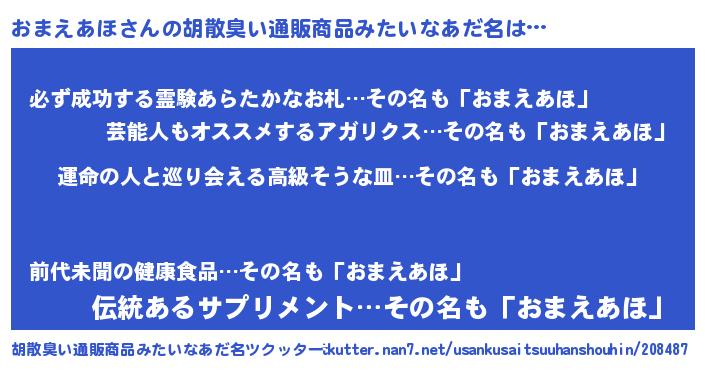 | 意味不明あだ名 | 『おまえあほフォーエバー』 |