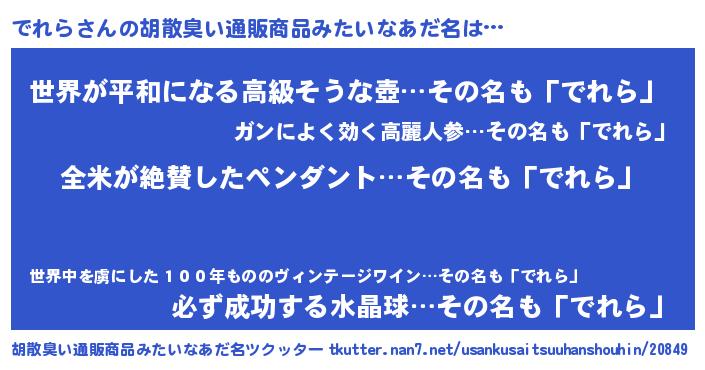 | 意味不明あだ名 | 『とにかく怪しいでれら』『自称でれら』 |