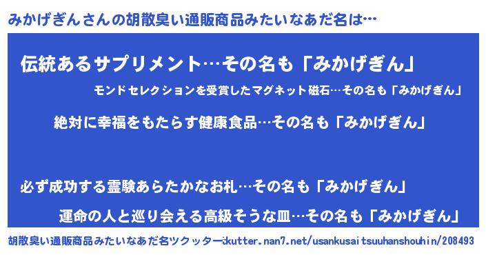 | ヘコむあだ名 | 『みかげぎん(笑)』『みか太郎』 |