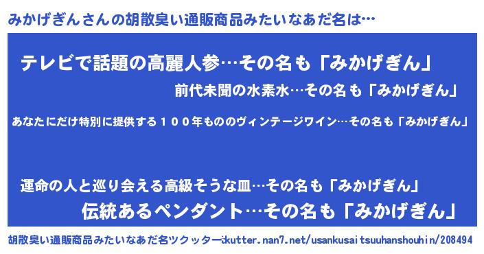 | ヘコむあだ名 | 『みか太郎』『みかげぎん(小並感)』 |