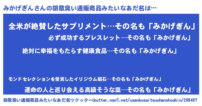 | ヘコむあだ名 | 『みかげぎん(爆)』『みかを』 |