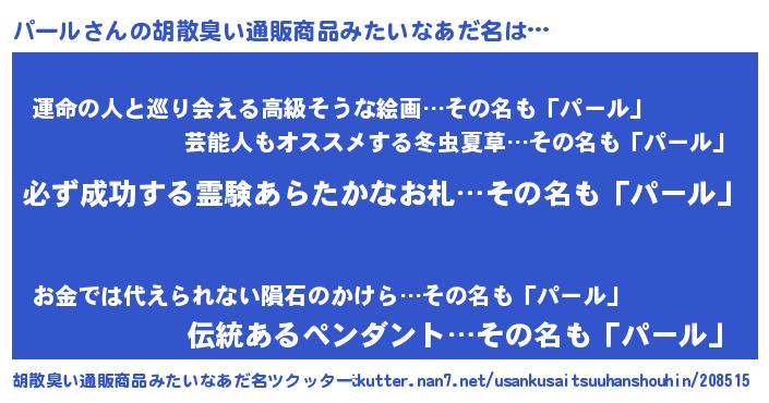| 意味不明あだ名 | 『ペロリンパール』『パールフォーエバー』 |