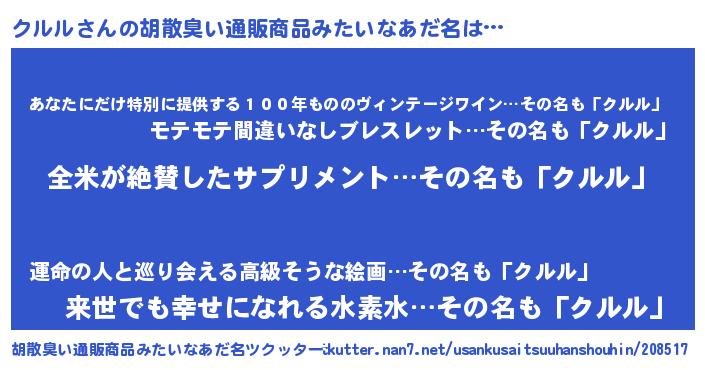 | 意味不明あだ名 | 『とにかく怪しいクルル』 |
