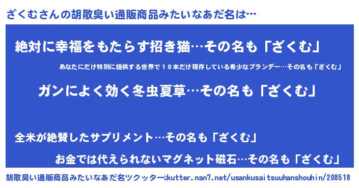 | ヘコむあだ名 | 『ざくむ(苦笑)』『ざくっちょ』 |