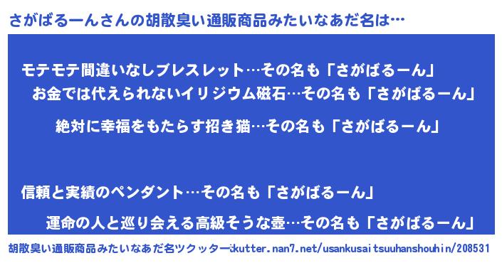| ヘコむあだ名 | 『さがばるーん(小並感)』『さがふぇ~』 |