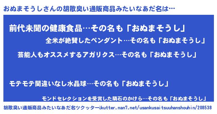 | ヘコむあだ名 | 『おぬまそうし(笑)』『おぬっ子』 |