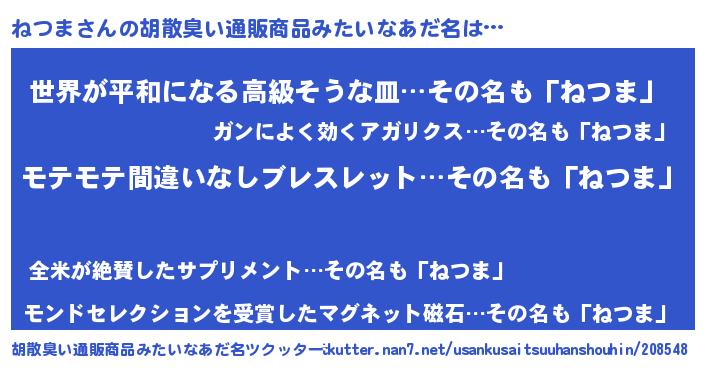 | 肩書あだ名 | 『ねつま社長』『ねつま国家主席』 |