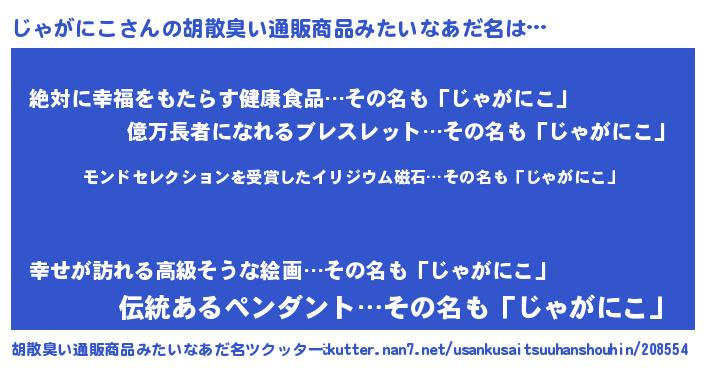 | ヘコむあだ名 | 『じゃがにこ(爆)』『じゃっ子』 |