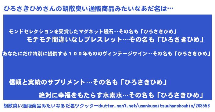 | 意味不明あだ名 | 『住所不定無職ひろさきひめ(9歳)』 |