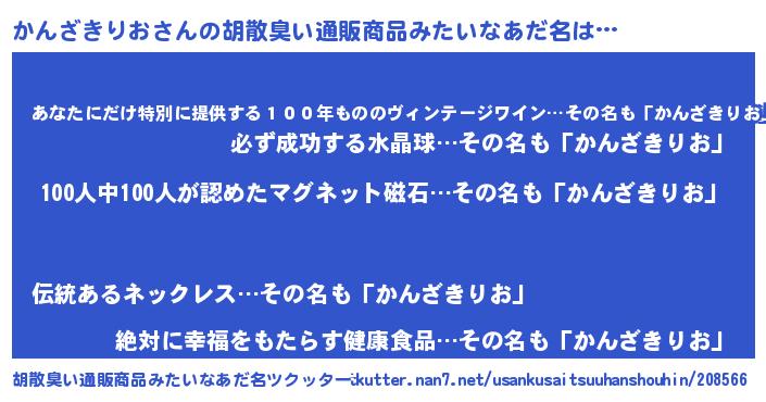 | ヘコむあだ名 | 『かんざきりお(小並感)』『かんにー』 |