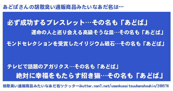 | 意味不明あだ名 | 『眠気覚ましガムあどば味』『自称あどば』 |