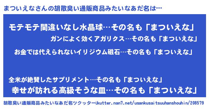 | ヒーロー風カッコイイあだ名 | 『愛の使者まついえな』『天弓騎士マツ』 |