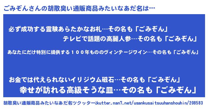 | 意味不明あだ名 | 『住所不定無職ごみぞん(3歳)』 |
