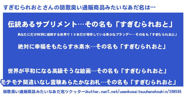 | 男性向けラノベタイトル風あだ名 | 『はたらくすぎむられおとさま!』 |