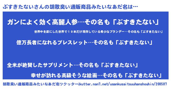 | 男性向けラノベタイトル風あだ名 | 『ぶすきたないに滅ぼされるだけの簡単なお仕事です』 |