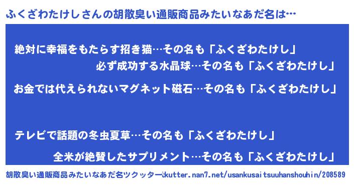 | ヘコむあだ名 | 『ふくざわたけし(小並感)』『ふくお』 |