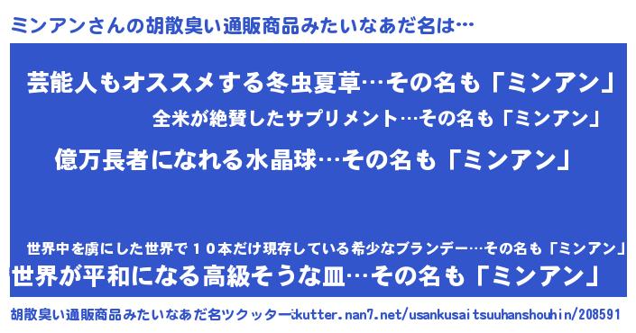 | 意味不明あだ名 | 『ペロリンミンアン』『自称ミンアン』 |