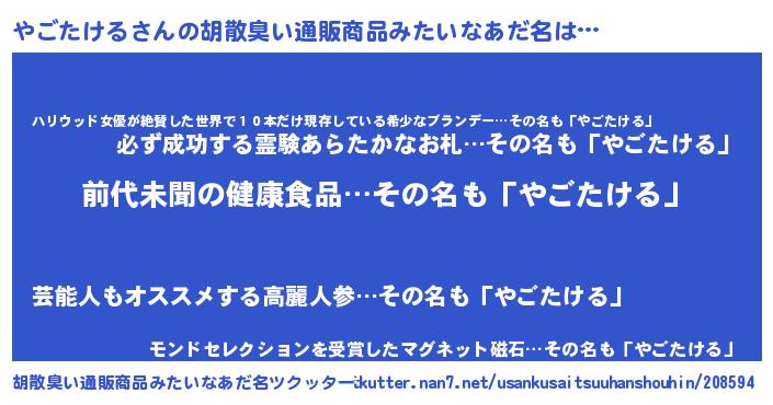 | ヘコむあだ名 | 『やごたける(爆)』『やごふぇ~』 |