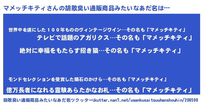 | 意味不明あだ名 | 『永久保存マメッチキティ』 |