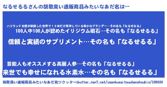 | 意味不明あだ名 | 『とにかく怪しいなるせるる』 |