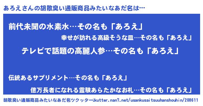 | 欧米人風あだ名 | 『ケンブリッジあろえ』『マイケルあろえ』 |