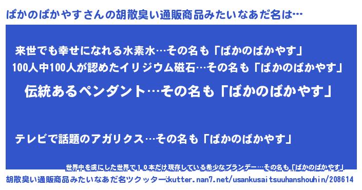 | 欧米人風あだ名 | 『ウサインばかのばかやす』 |