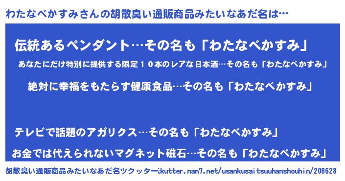 | ヘコむあだ名 | 『わたなべかすみ(苦笑)』『わたっぺ』 |